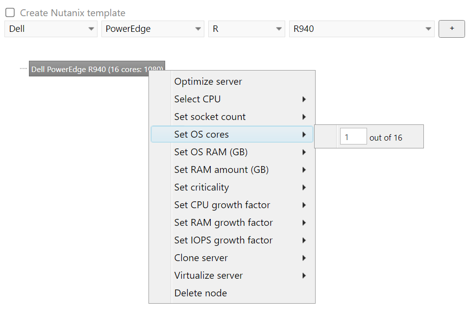 - The number of cores reserved for the operating system on the host. The higher this number is, the less processing power is available for the virtual servers under the host. In the case of Nutanix servers, this means the number of cores reserved for the Controller Virtual Machine (CVM). Cloud servers do not have this setting.