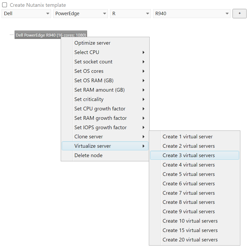 - Virtualize the host by creating 1-20 virtual servers from the context menu.